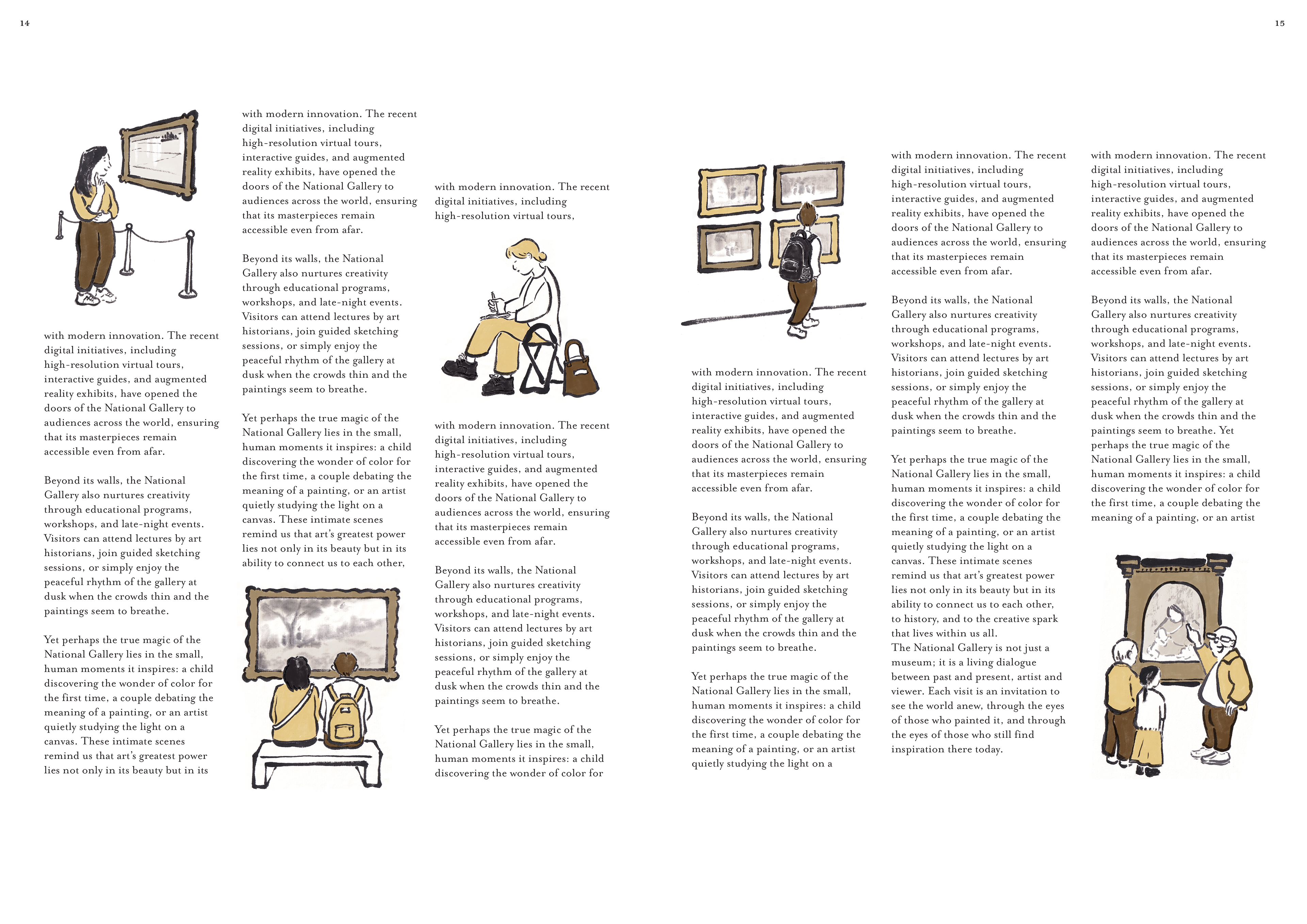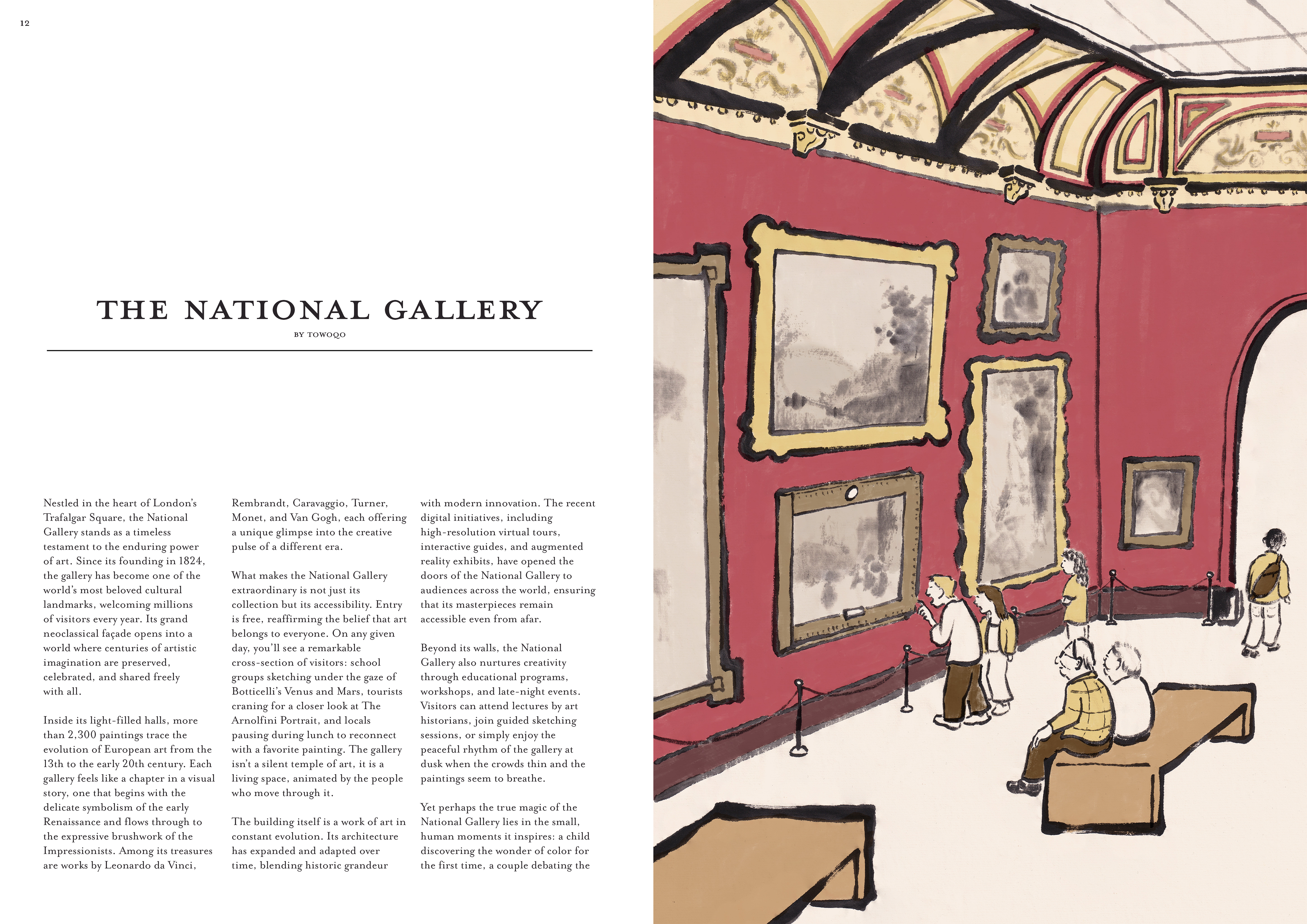 Showing readers the grandeur and experience of being in The National Gallery, a museum in London which houses traditional Western paintings.