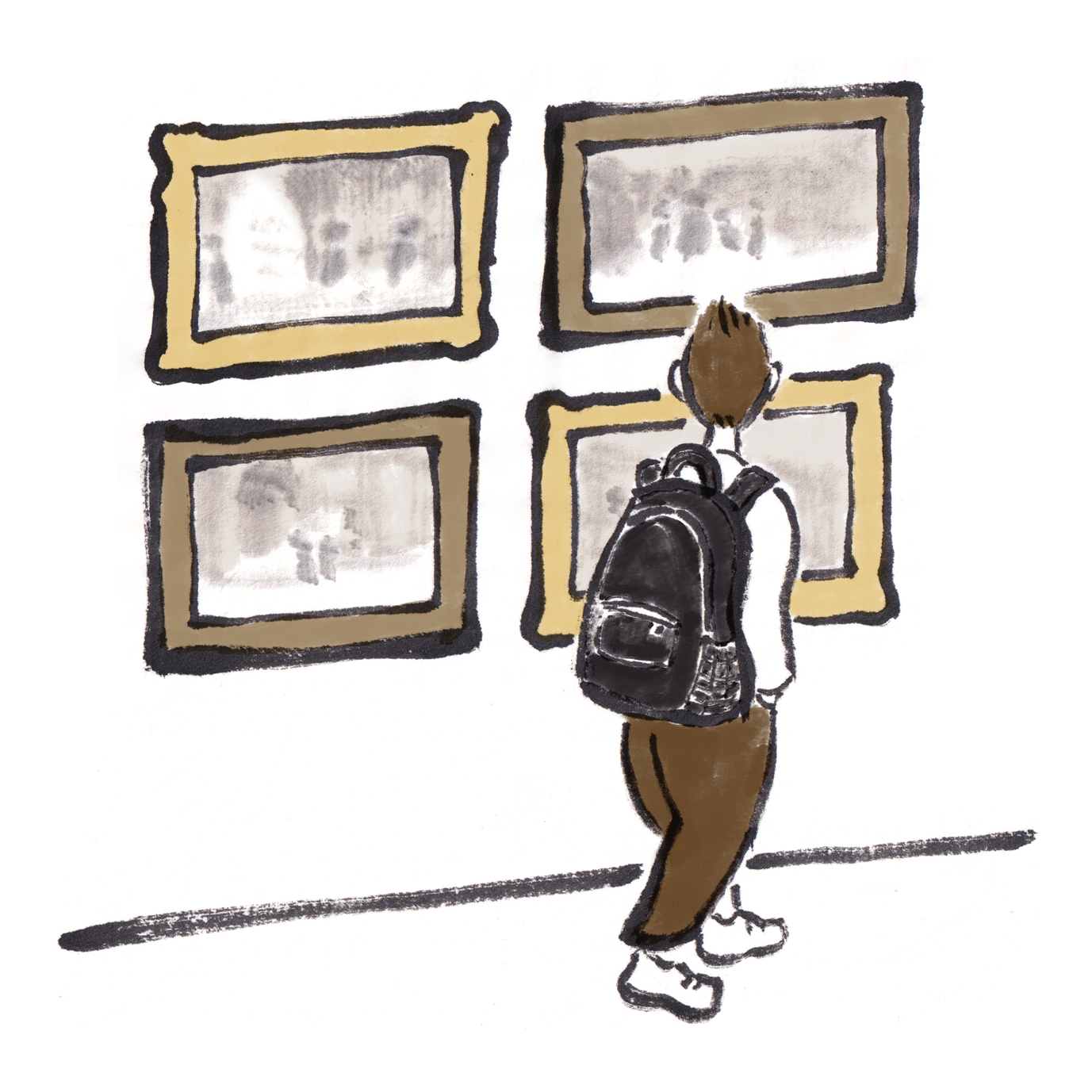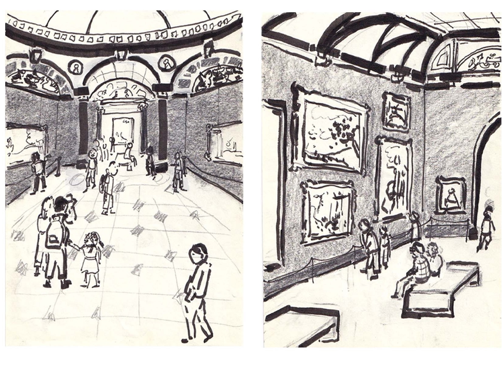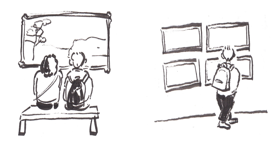 Close ups of observations of what people do when visiting The National Gallery.
