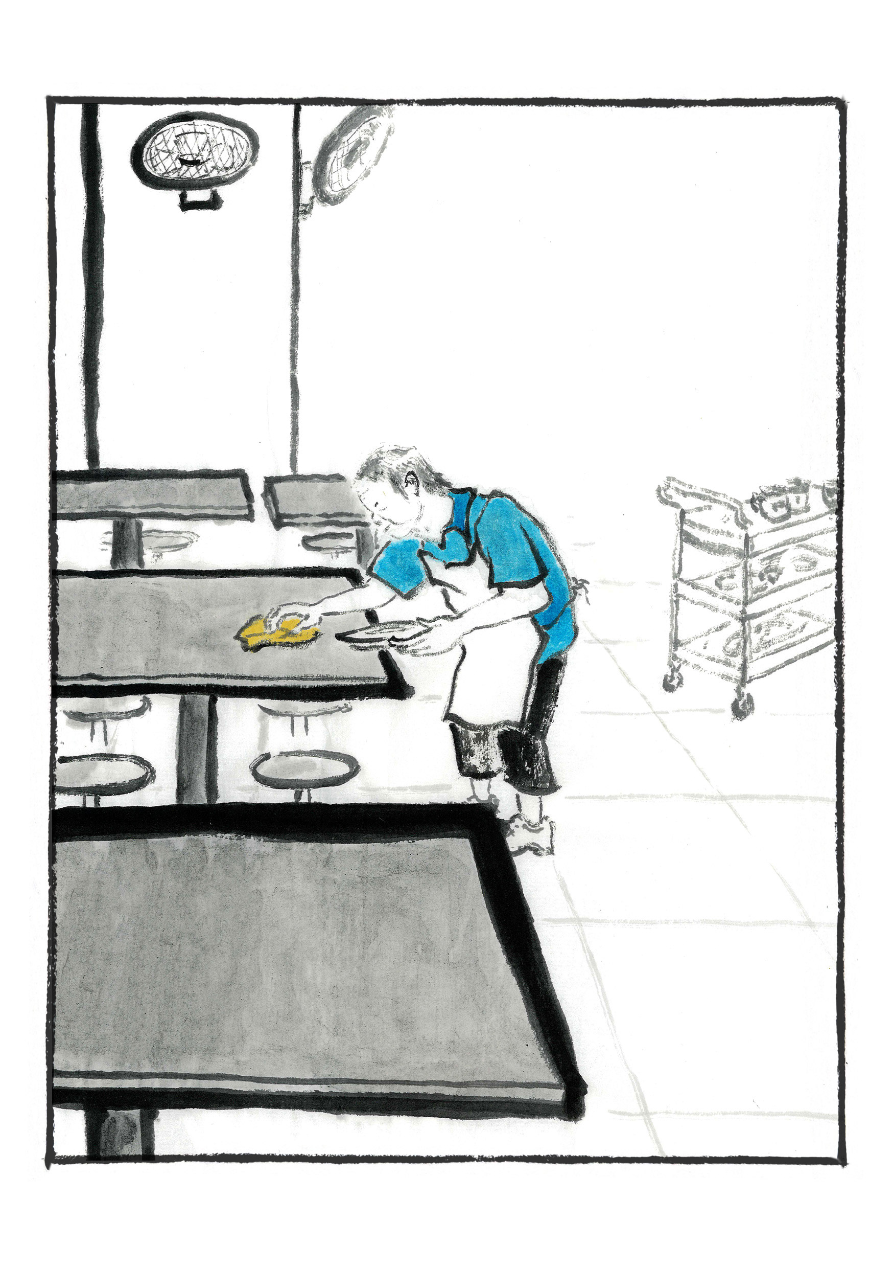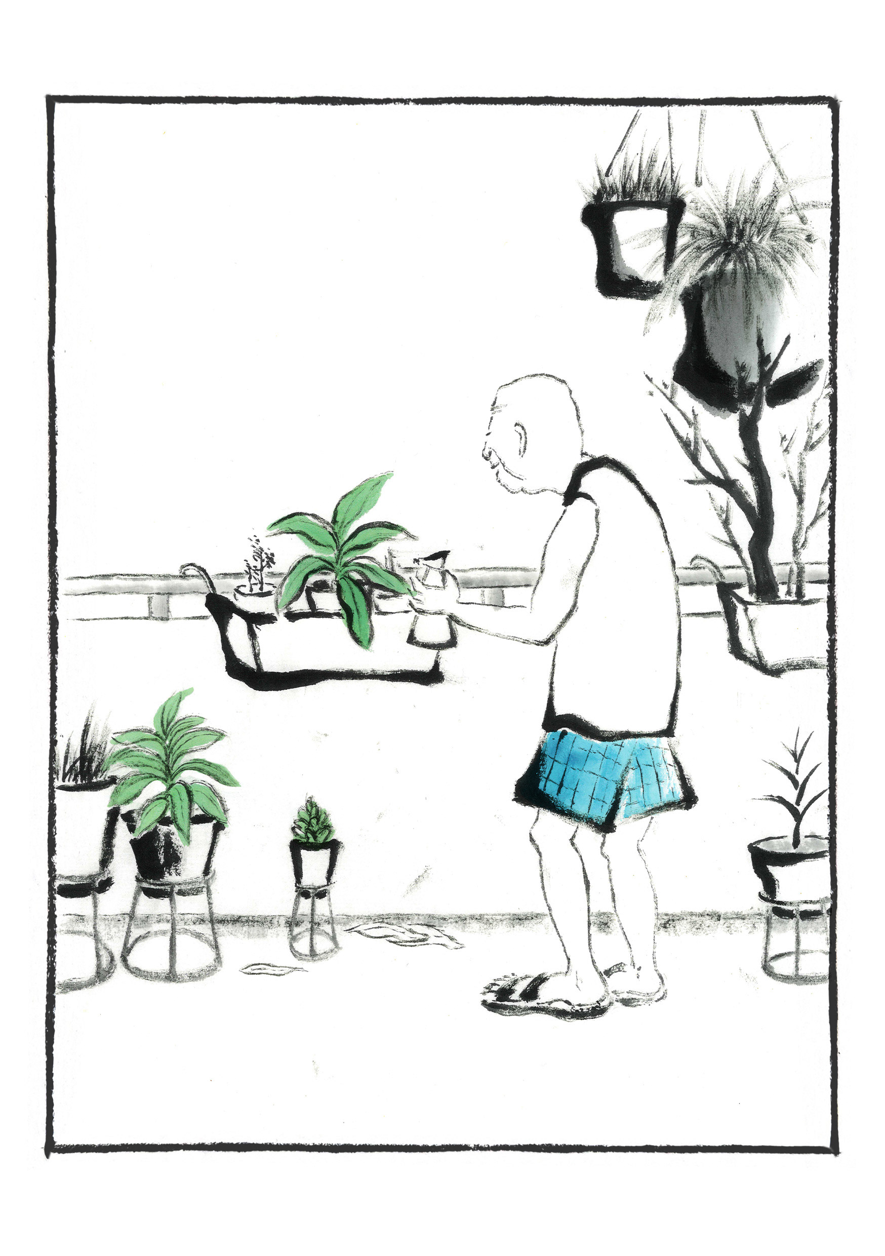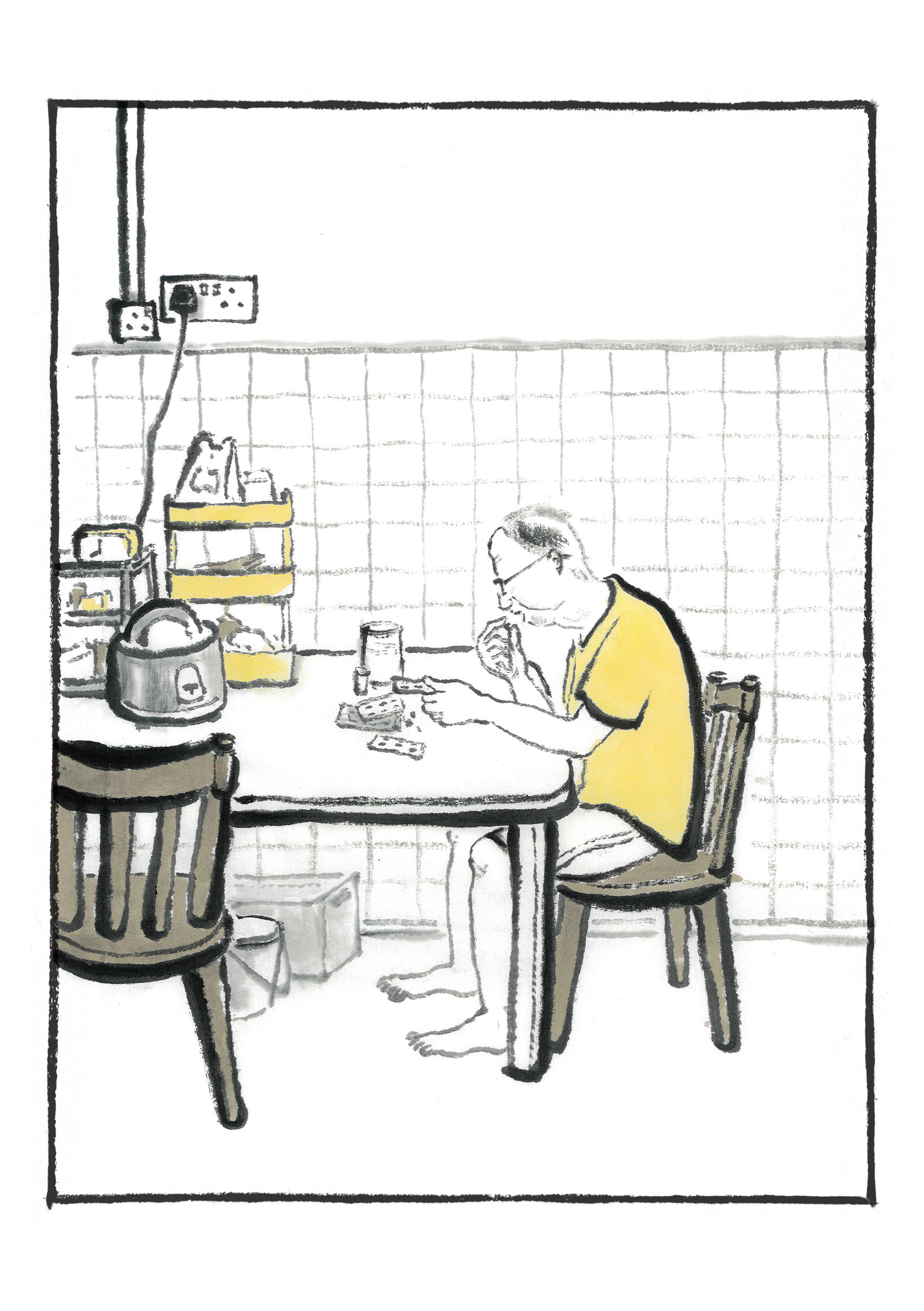 An illustrated concertina book which delves into the daily lives of old people in Singapore, ranging from the quiet happiness they find in their slow lives to the struggles they experience in their golden years, leading up to their final breath.