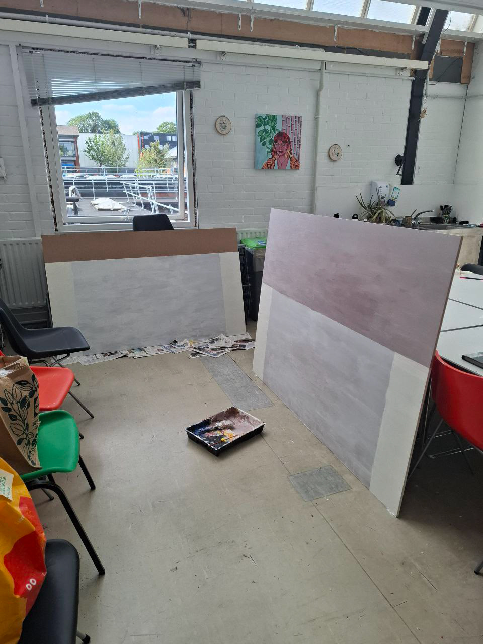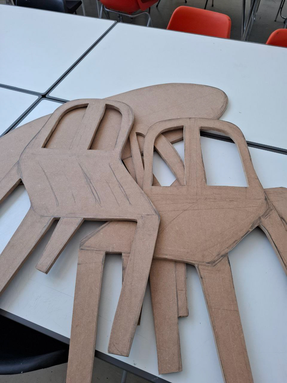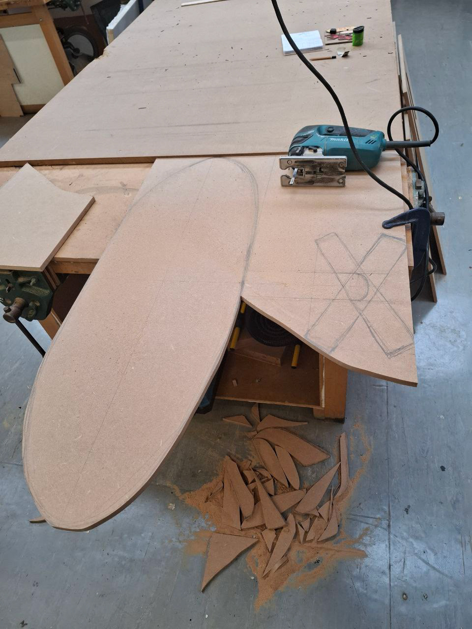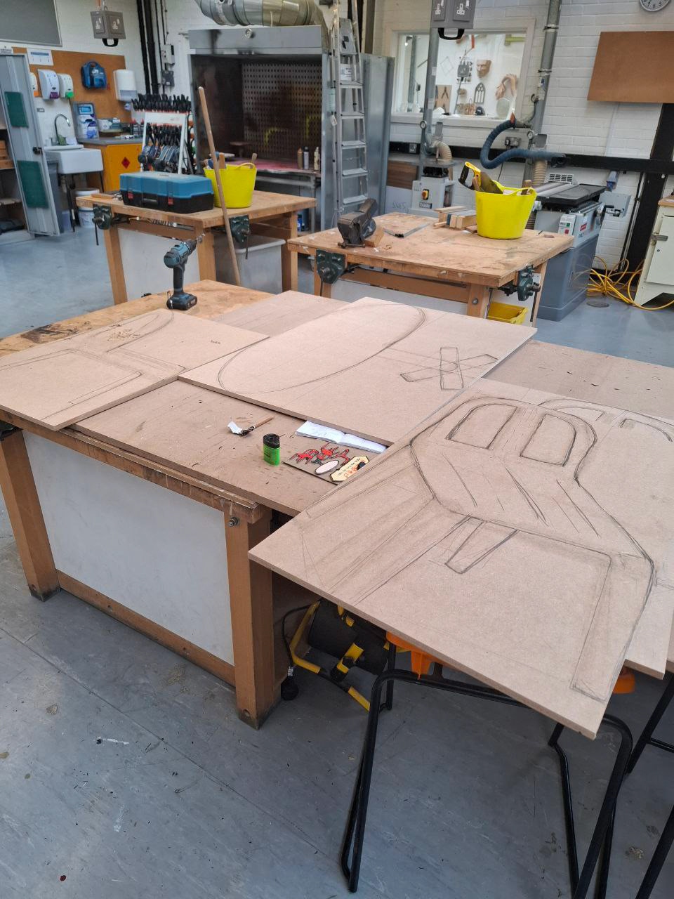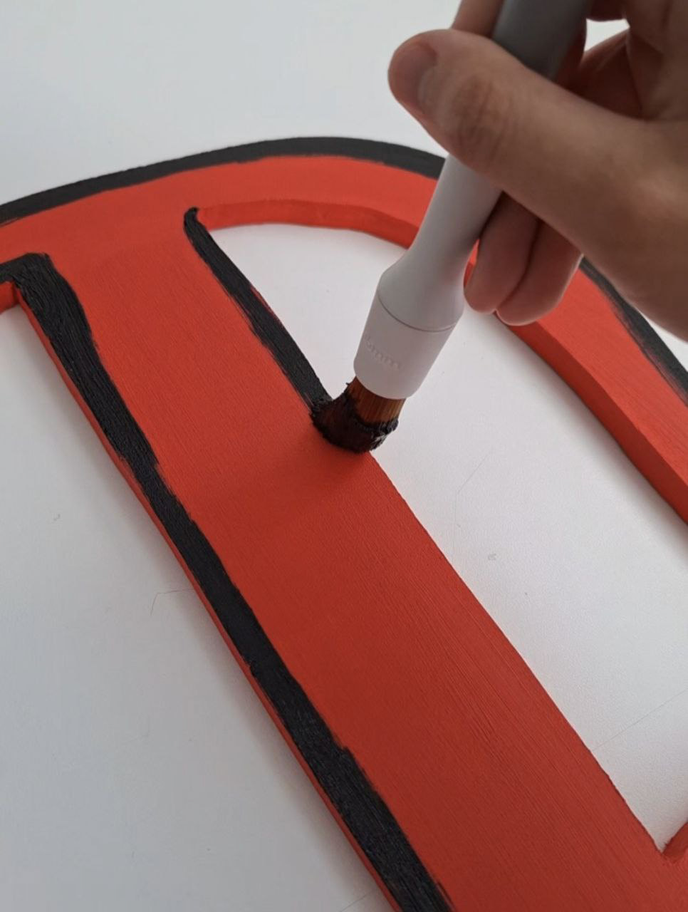 Process of cutting the MDF wood in a woodworking studio and painting them.