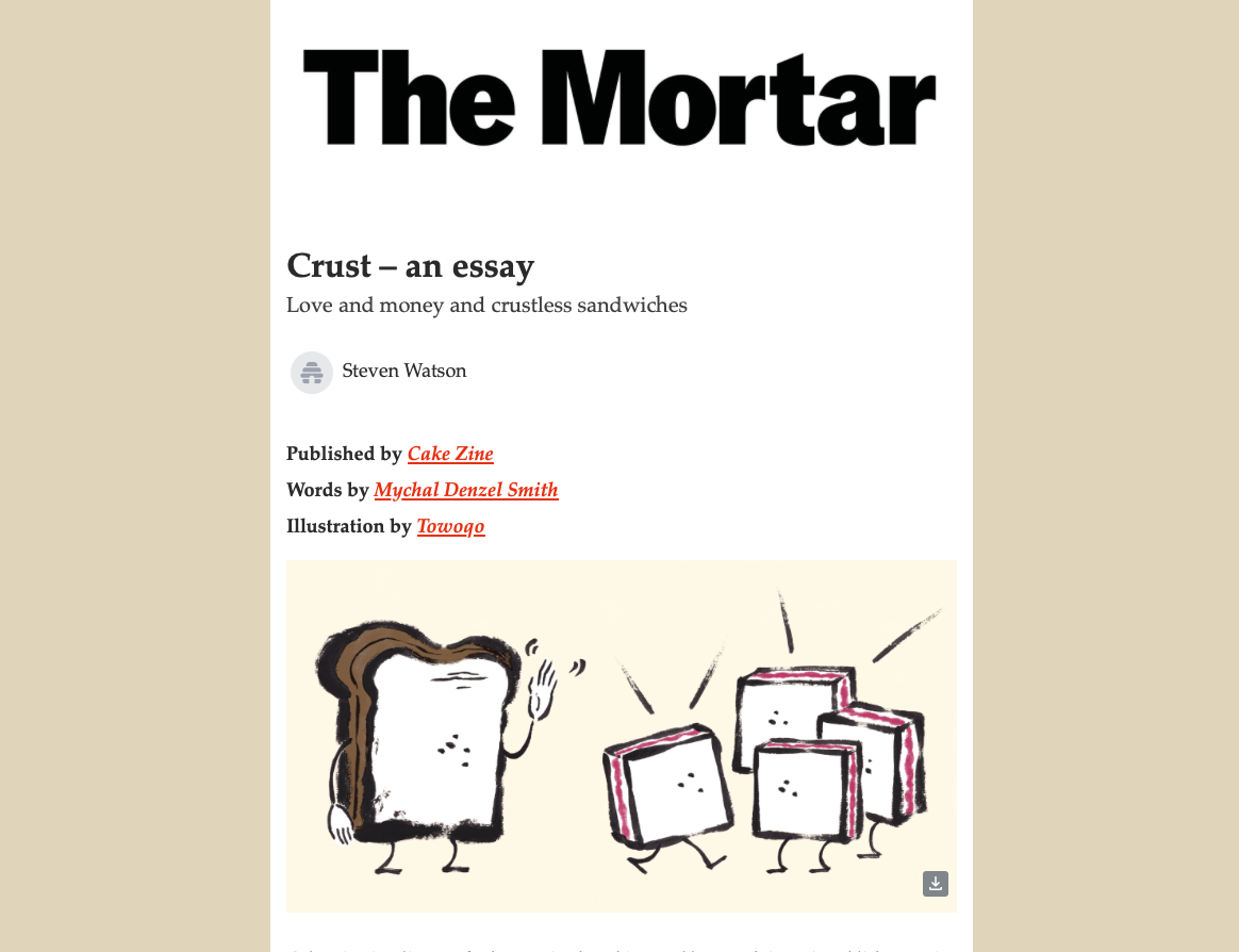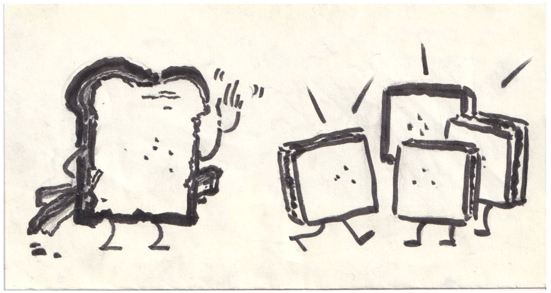 I want to portray the sacrifices a parent makes out of their unconditional love for their child. In my illustration, crusts represent hardship. The parent sandwich is portrayed with crusts to show its struggles while the child sandwich is crustless, showing it did not have to go through the same hardships as its parent.